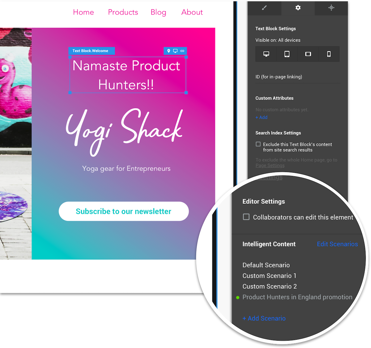 Like lego, build pages of your site, using pre-designed blocks like headers, hero sections, team sections and more, then tweak their style and settings as you like. Create Symbols as your own personal reusable custom blocks - create once, use anywhere.